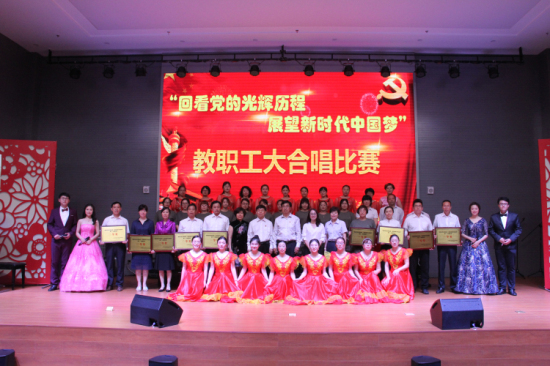 我校举办教职工迎“七一”合唱比赛时间:2018-06-30 来源: 发布人: 浏览量:为深入学习贯彻习近平新时代中国特色社会主义思想和党的十九大精神,积极培育和践行社会主义核心价值观,提升广大党员干部群众的爱国素养,6月29日,我校党委举办了“回看党的光辉历程,展望新时代中国梦”教职工迎“七一”合唱比赛,纪念中国共产党建党97周年,讴歌中华民族从站起来、富起来到强起来的伟大飞跃。