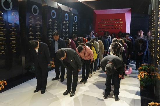 在马石山十勇士纪念馆前,工作人员还组织大家重温入党誓词,铿锵有力的宣誓声中,全体党员更加坚定了为党的事业奋斗终身的决心和信念。