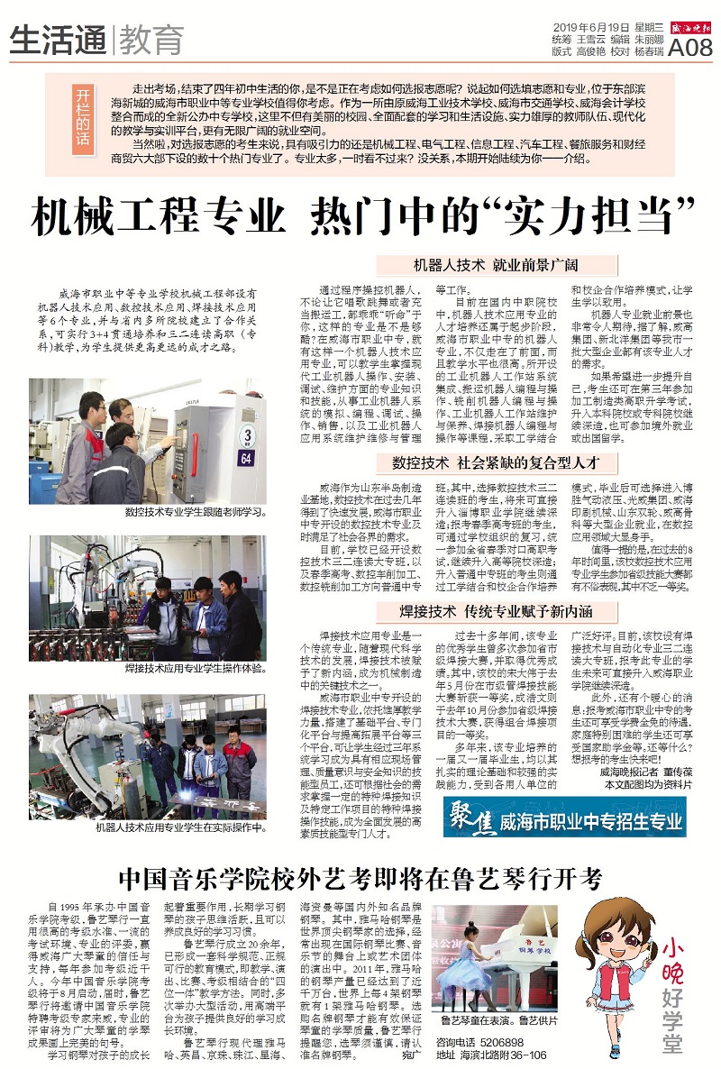 威海晚报——机械工程专业 热门中的“实力担当” 时间:2019-06-20 来源: 发布人: 浏览量: