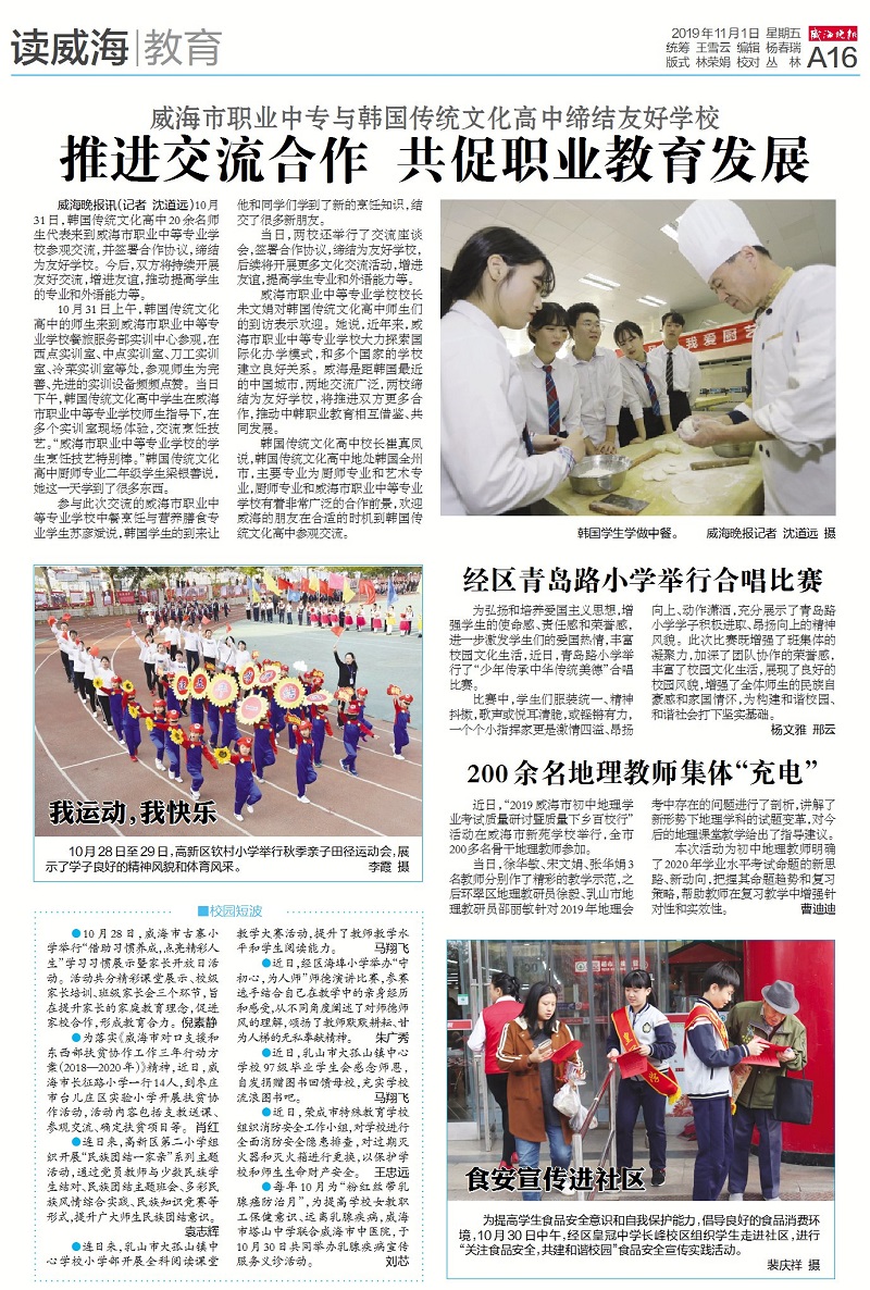 威海晚报——威海市职业中专与韩国传统文化高中缔结友好学校 时间:2019-11-02 来源: 发布人: 浏览量: