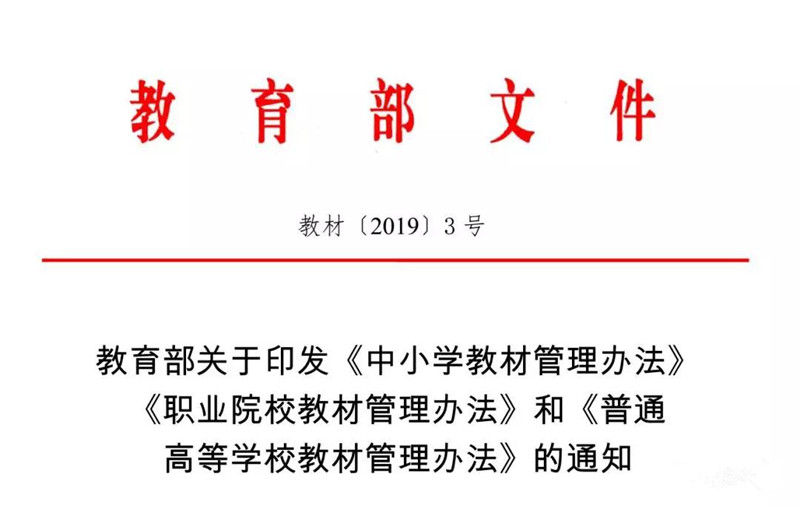 教育部印发《职业院校教材管理办法》时间:2020-01-06 来源: 发布人: 浏览量: